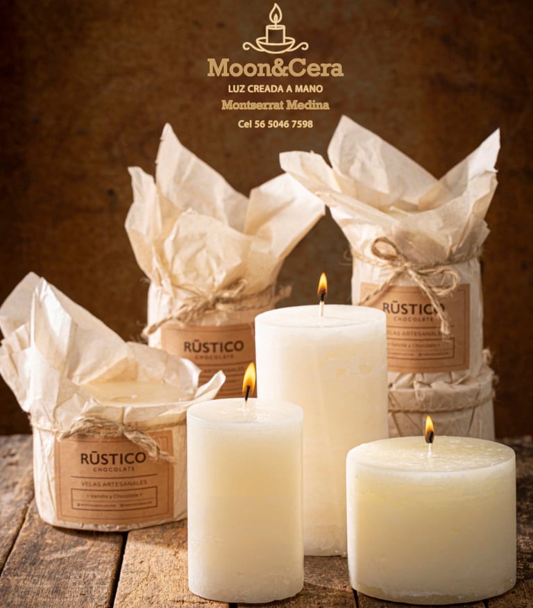 Cada vela hecha a mano por Montserrat Medina, con aromas que cuentan historias.